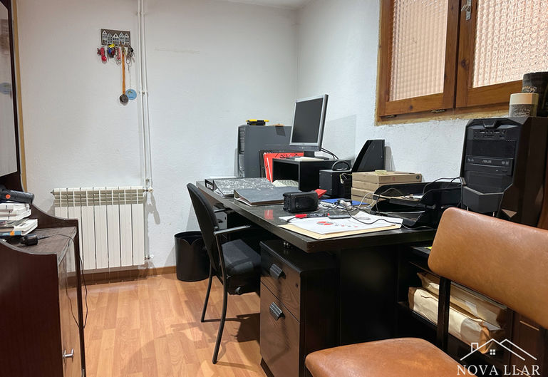 Gran garatge amb capacitat per a dos vehicles on trobem un descalsificador, dues portes motoritzades, espai de caldera i dipòsit, zona de magatzem/rebost i un despatx amb finestra exterior.